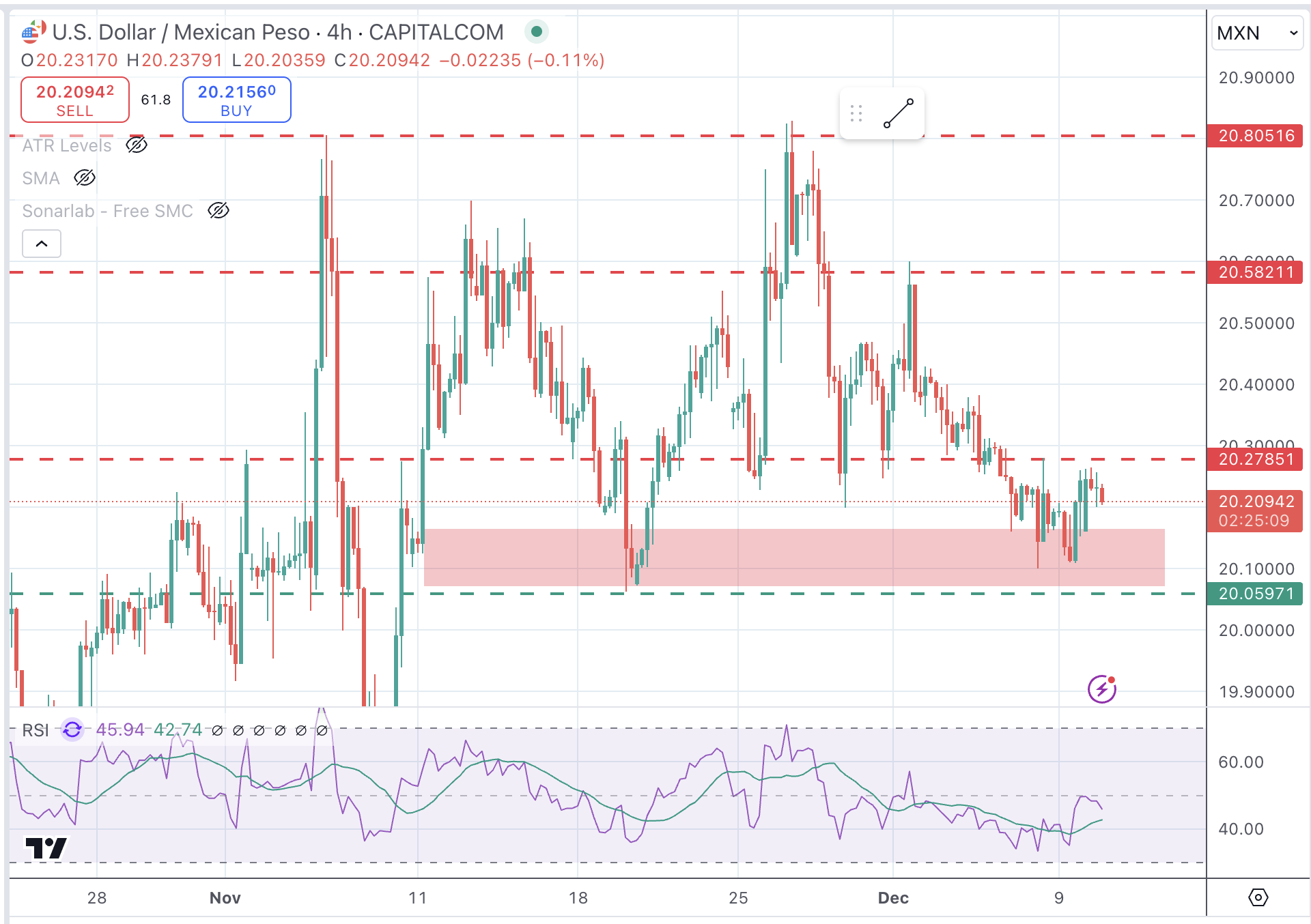 受美元(USD)走强的拖累,墨西哥比索(MXN)从 20.00 关键点位开始走低。周二市场情绪略微转弱,为避险的美元提供了支持,而墨西哥比索仍受到周一疲软的墨西哥通货膨胀数据的拖累。 随着投资者的焦