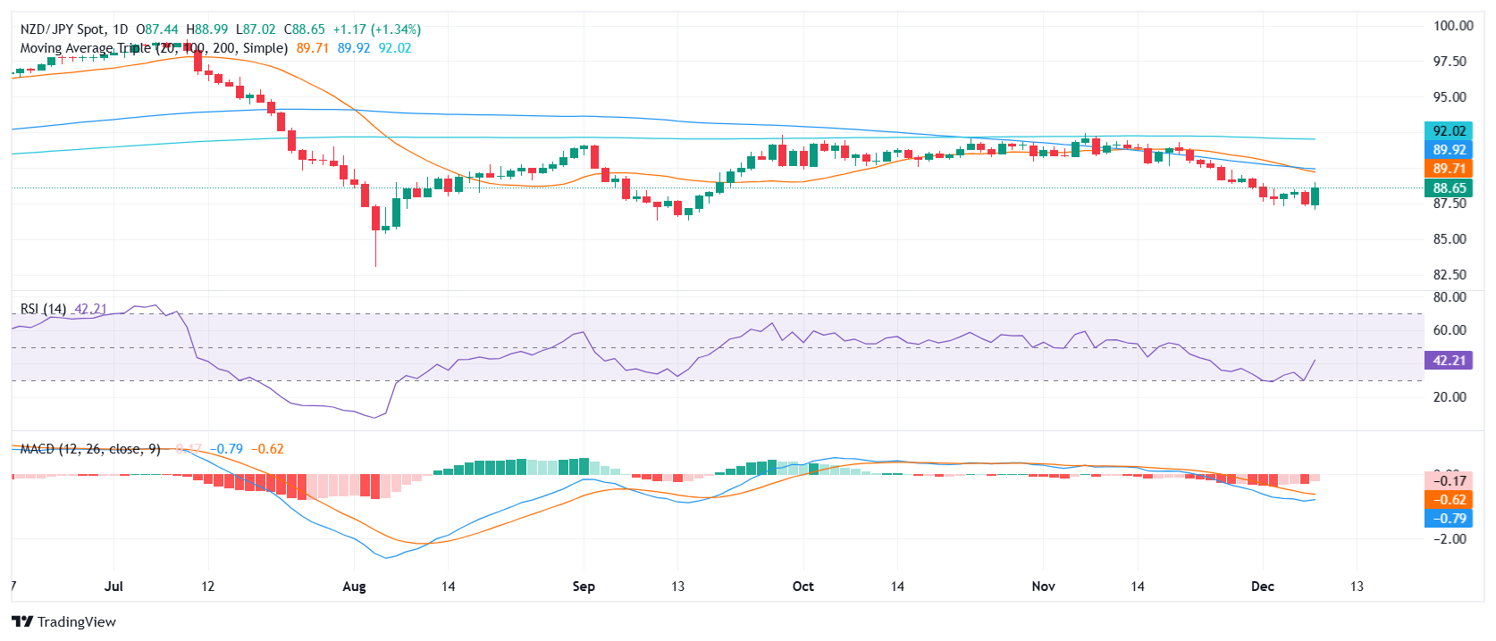 纽元/日元价格分析:反弹至 88.65,但维持看跌风险