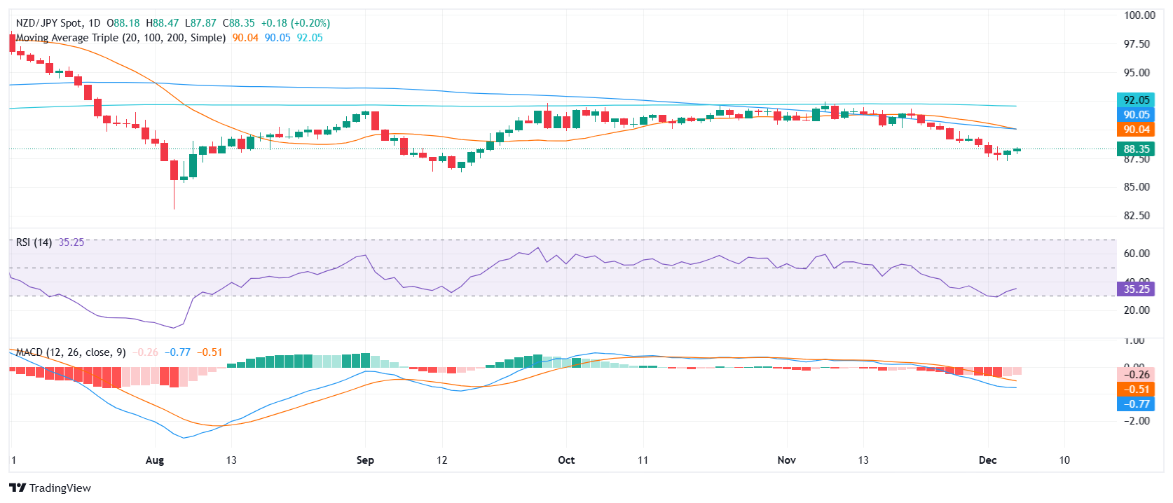 纽元/日元价格分析:纽元/日元走强至 88.30,但仍维持看跌前景