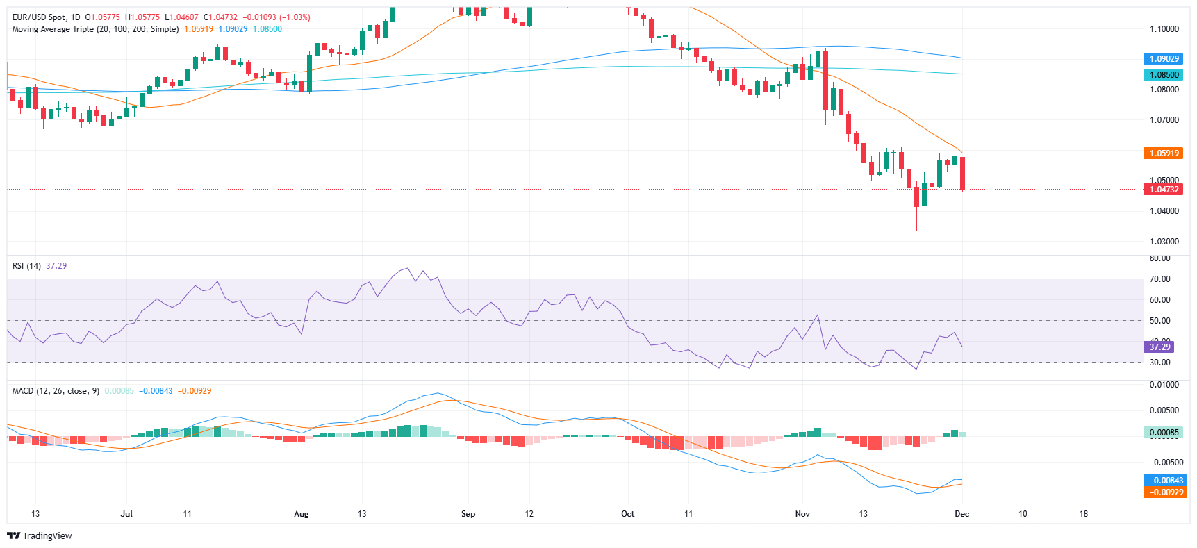 欧元/美元货币对以大幅下跌拉开本周序幕,跌幅超过 1%,并果断跌破 1.0500 心理关口。这一走势也将货币对进一步推低至 20 日均线(SMA)下方,该均线近期一直充当着强劲阻力的角色。