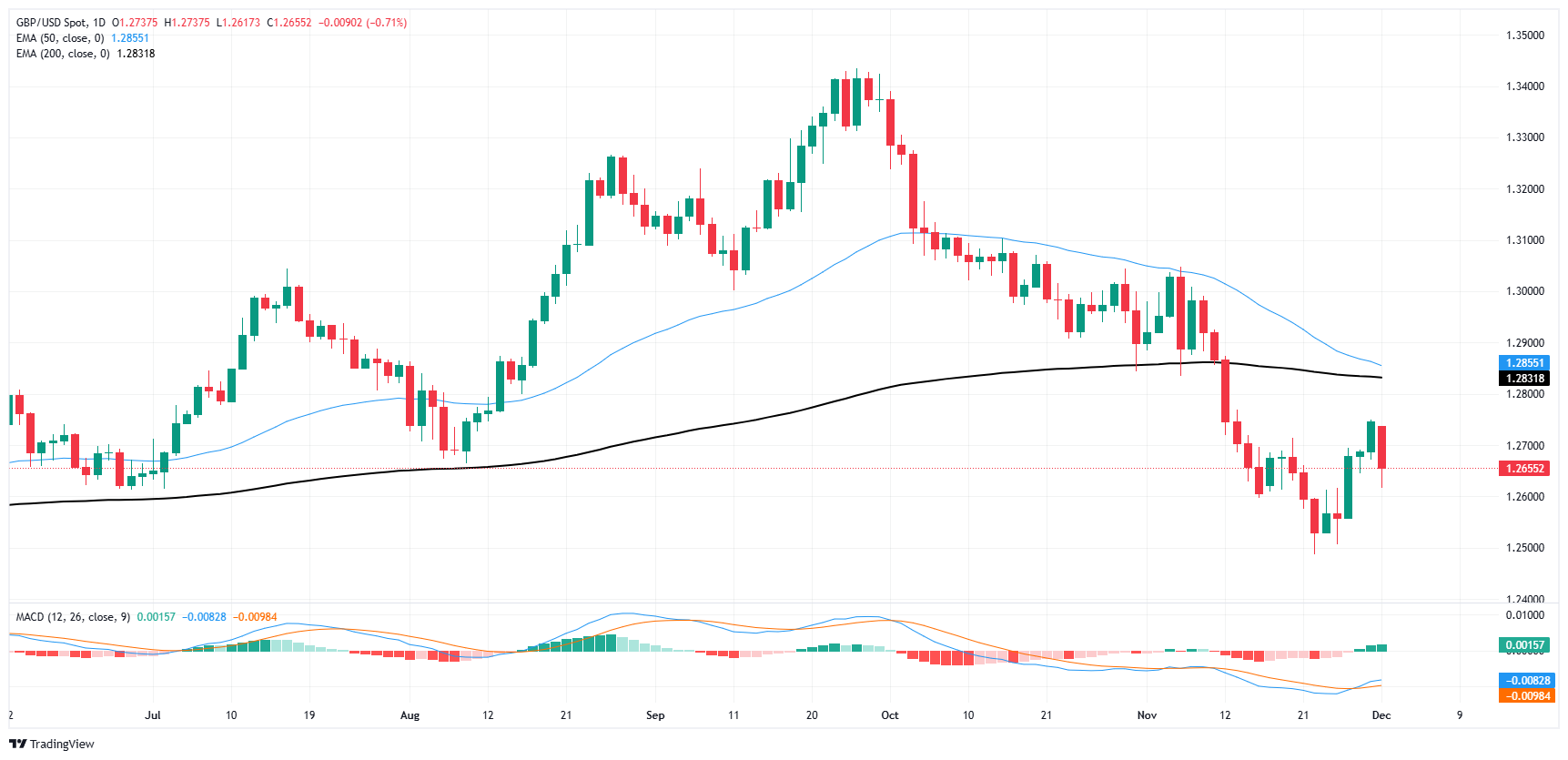 周一,加元(CAD)兑美元汇率又下跌0.4%。尽管加拿大 11 月份采购经理人指数(PMI)数据回升,但加元仍下跌,打压加元兑美元汇率,因为投资者转而关注本周的美国劳动力数据,焦点处在周五公布的新一份