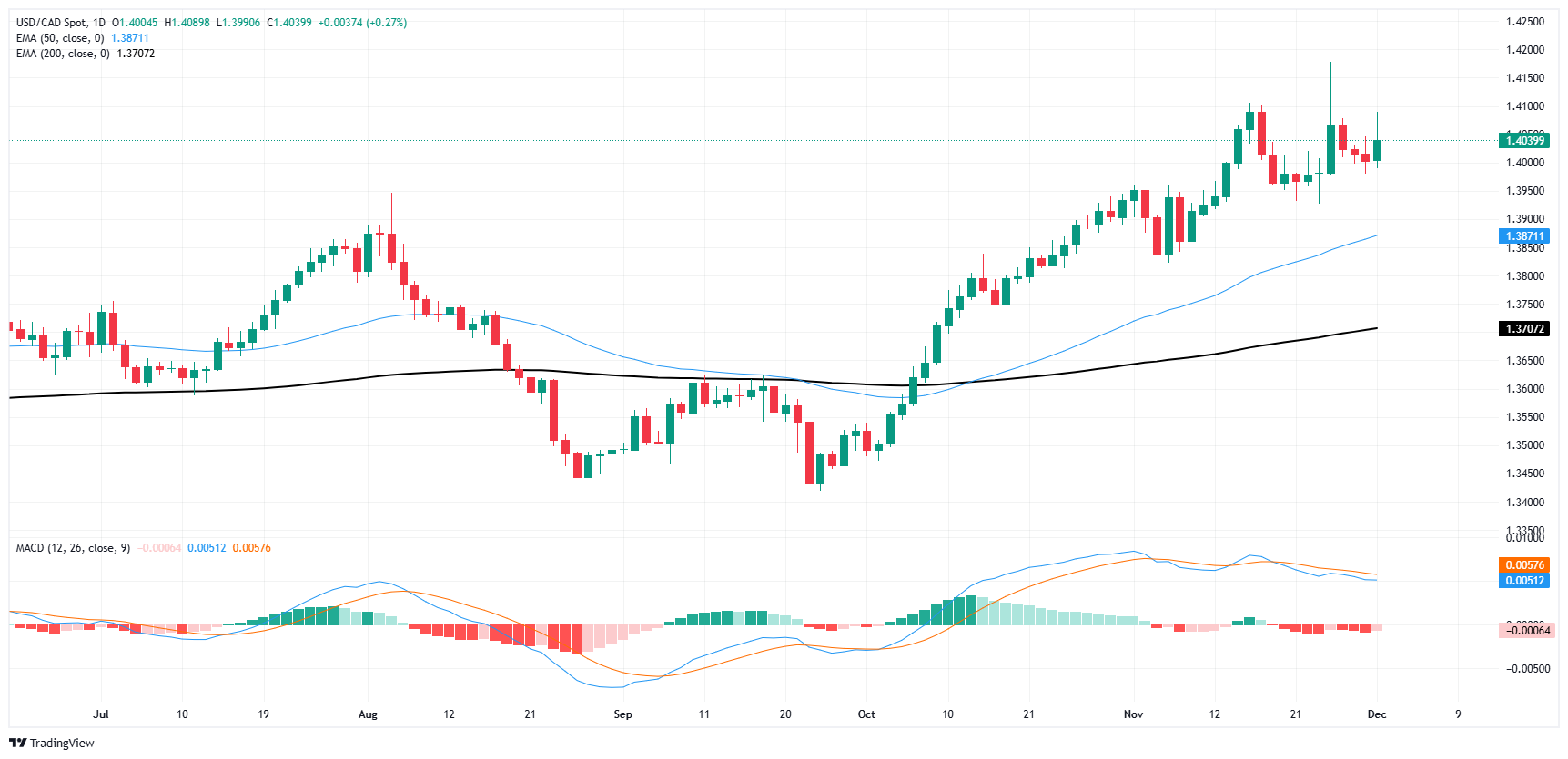 美国经济数据向好美元走强,美元/加元持平于 1.4050 附近