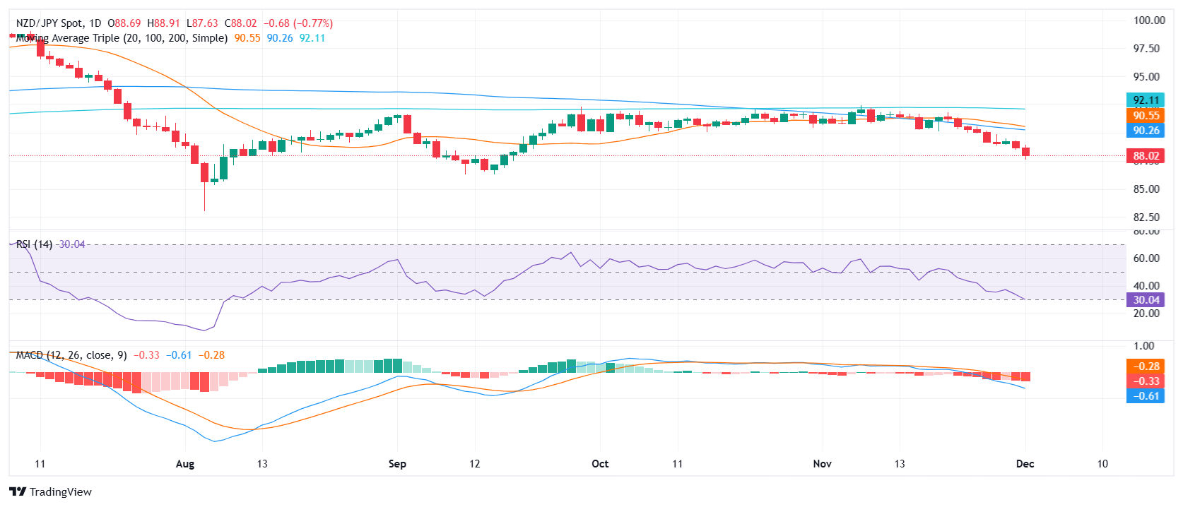 纽元/日元价格分析:跌向 88.00,空头占据主导