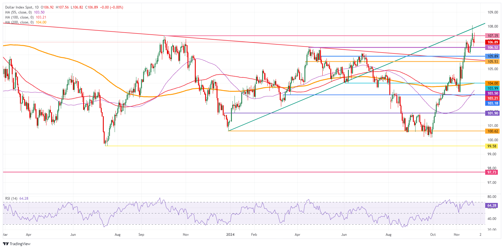 周二北美时段,美元/日元汇率跌至153.00附近。由于美元(USD)放弃了盘中的全部涨幅,在强势开盘后转为下跌,该资产骤降。追踪美元兑六种主要货币价值的美元指数(DXY)在107.50附近强势开盘后下