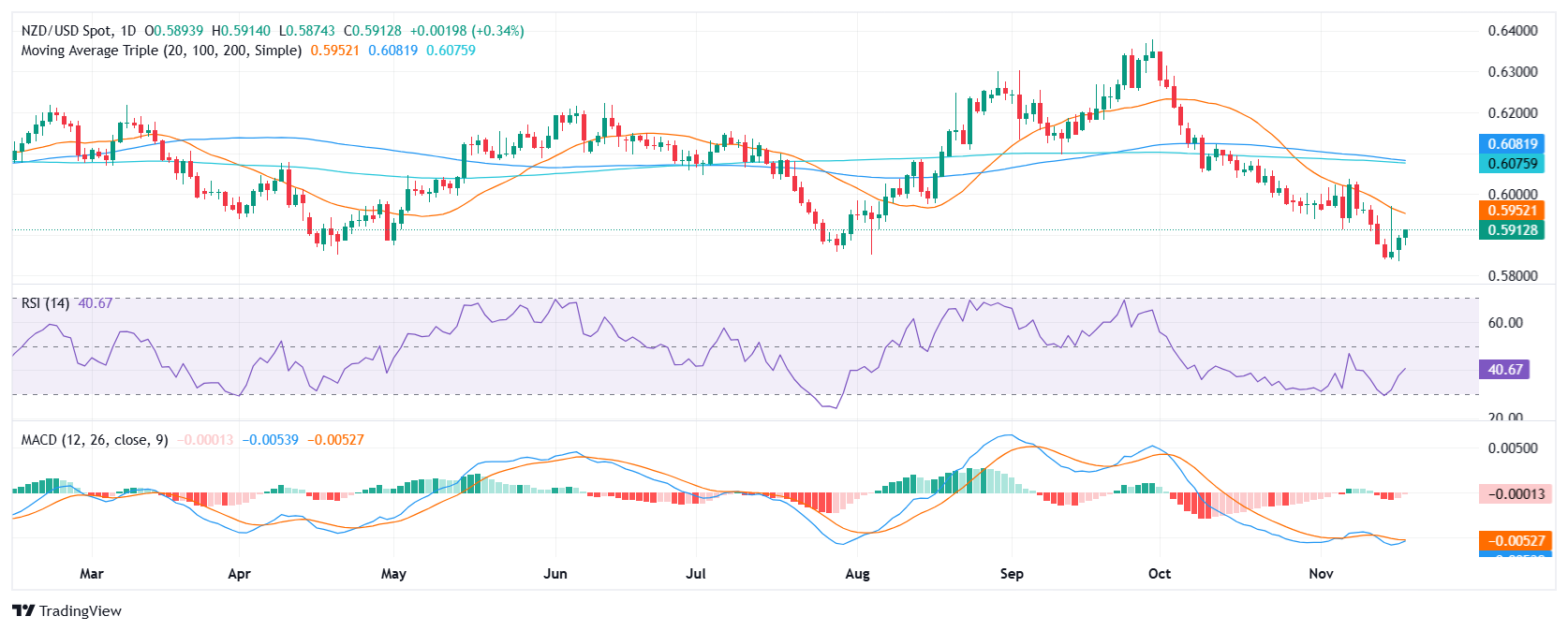 周二纽元/美元盘中攀升0.31%至0.5910,持续回升,因买方进一步企稳,并击退空头。相对强弱指标和移动均线背离(MACD)等指标持续回升,预示着动能不明朗。