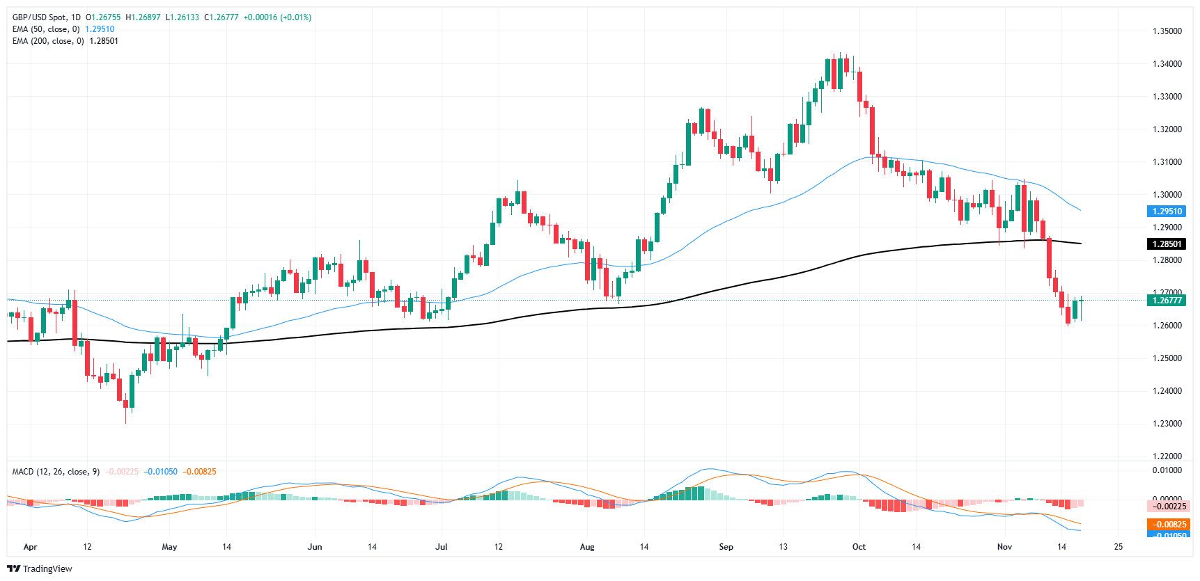 周二,英镑/美元震荡于 1.2700 附近,因为英镑交易商为周三将公布的频繁英国数据做好准备,其中最重要的是英国 10 月份消费者物价指数(CPI)通货膨胀数据。周三美国无经济数据公布,这将为英镑市场