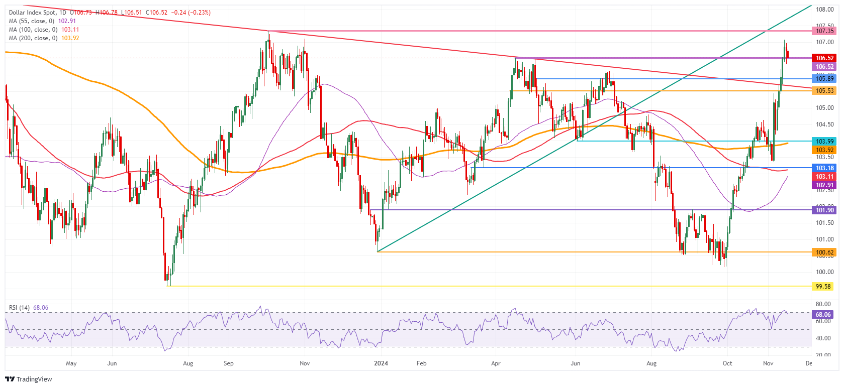 星展银行高级外汇策略师Philip Wee指出,美元指数(DXY)继2024年第三季度下跌4.8%至100.8后,在过去1个半月反弹5.9%至106.7。