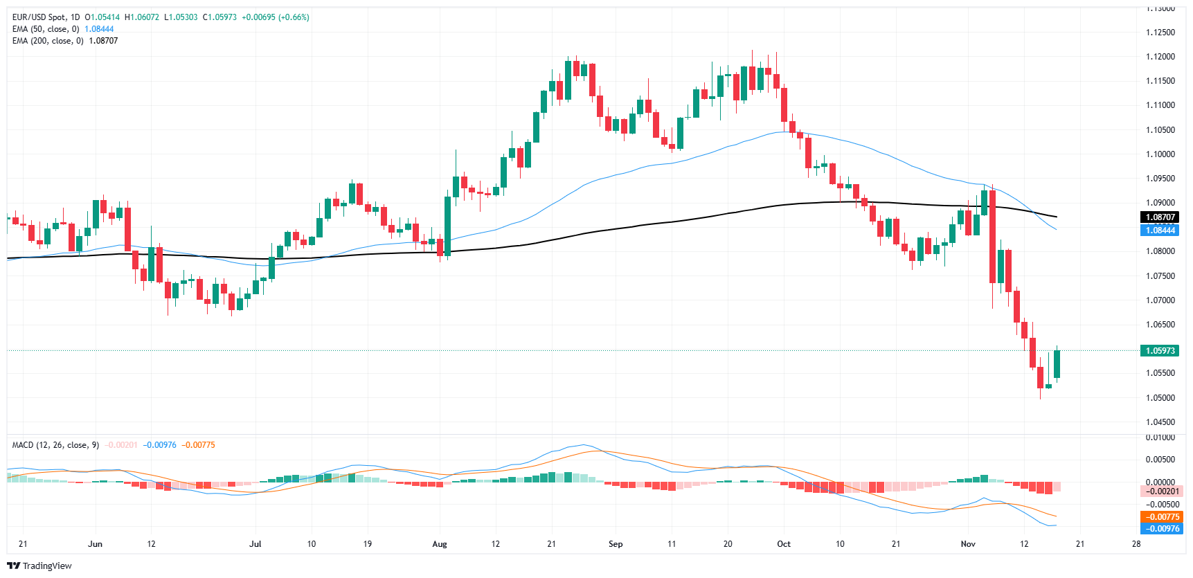 欧元/美元出现逢低介入买盘,延续自 1.05 水平的反弹势头