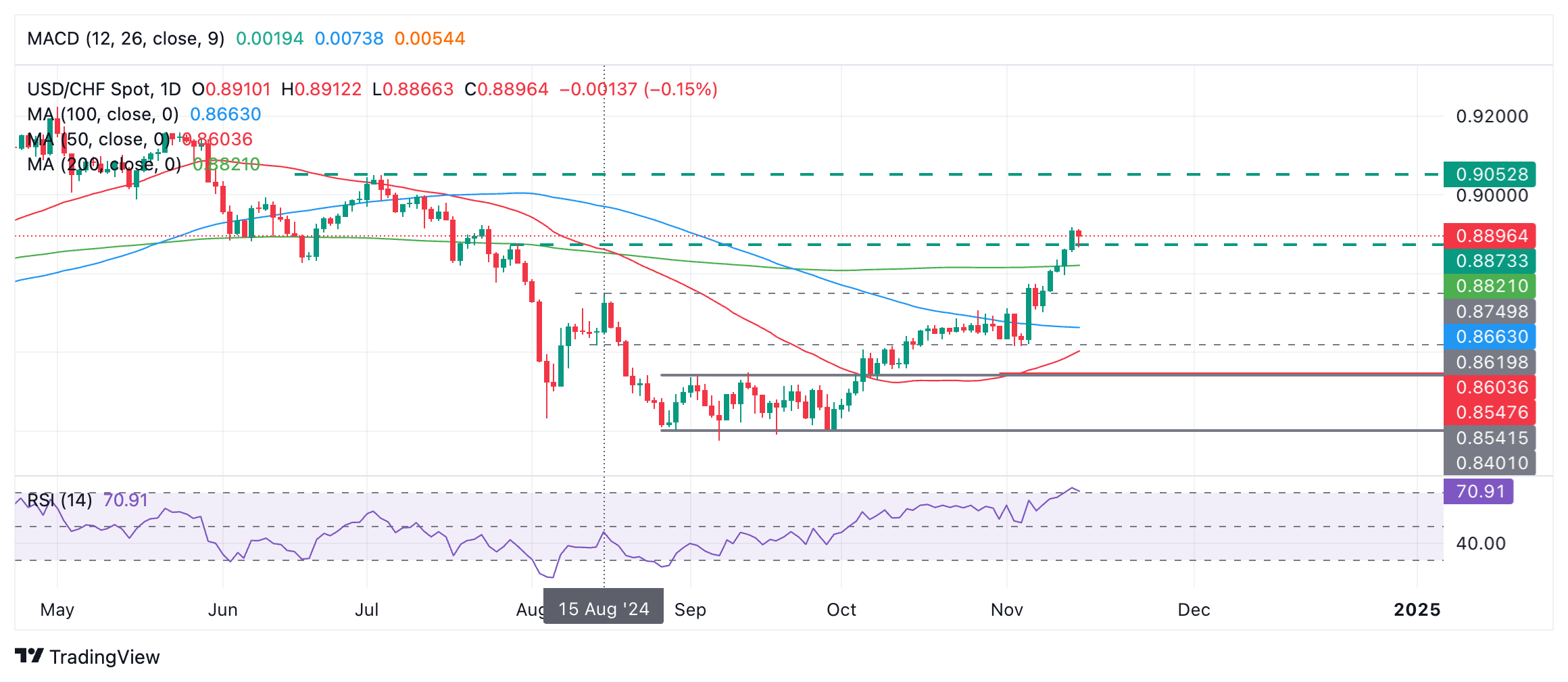 美元/瑞郎价格预测:达到超买水平