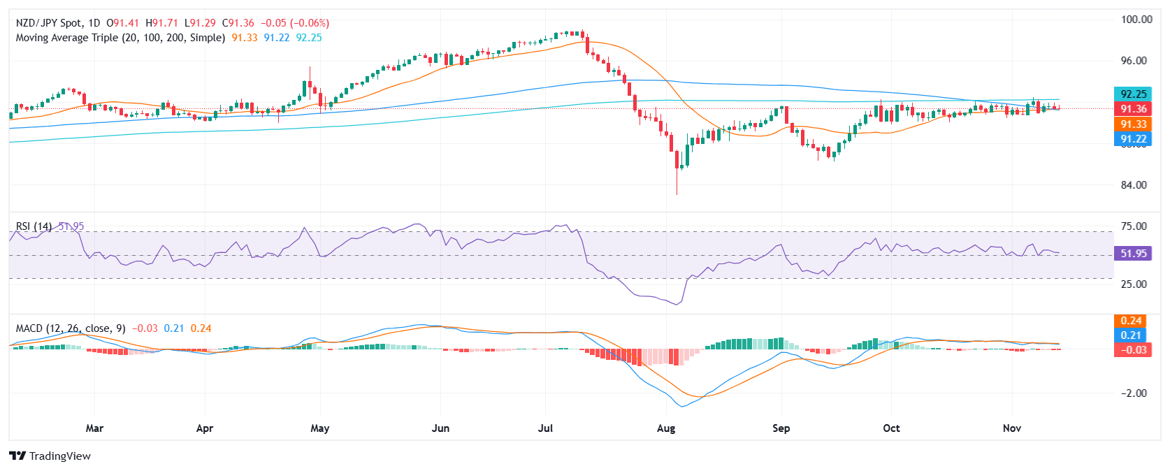 周四,纽元/日元盘中温和下跌至91.40,并持续交投于92.00-91.00区间内。技术指标呈中性,无明显主导,但 20 日和 100 日均线(SMA)之间最新构成看跌交叉可能最终会推动货币对走低。