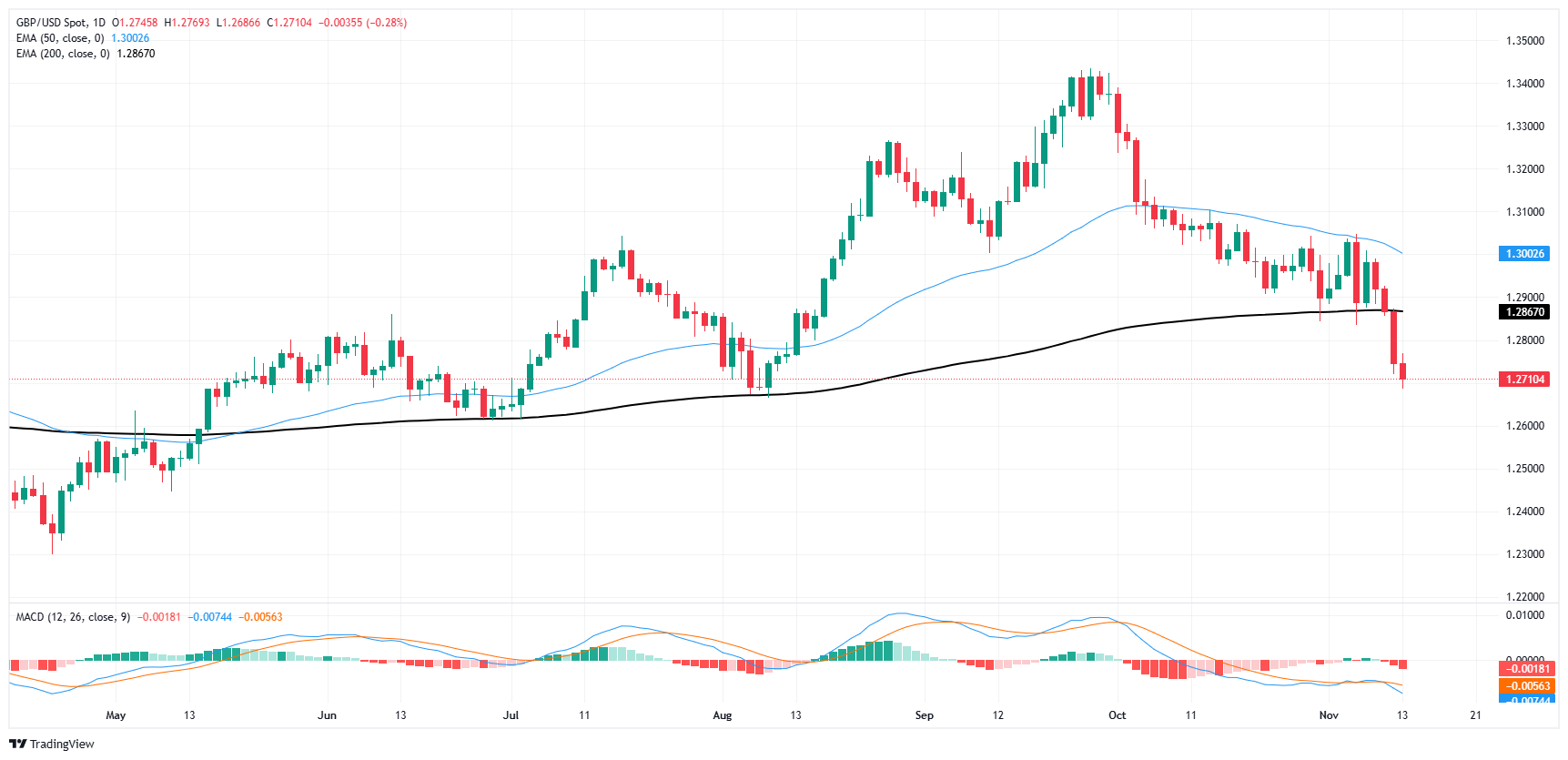 英镑/美元周三进一步回落至低位,进一步下跌至200日指数移动均线(EMA)下方,呈单边看跌,英镑/美元连续第四个交易日处于下跌之中。受美国消费者物价指数(CPI)通胀数据的影响,英镑兑全盘反弹的美元大