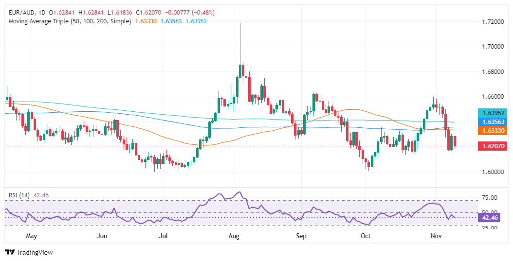 周一欧元/澳元开盘走低,美国时段尾盘跌幅愈 0.45%。货币市场避险情绪高涨,投资者担心即将上台的特朗普政府可能征收关税。 欧元/澳元在触及 1.6284 的日高后,现报 1.6207。