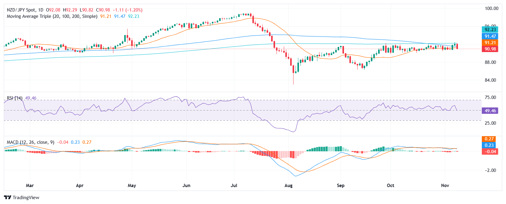 纽元/日元价格分析:看跌动能增强,正测试 91.00 水平