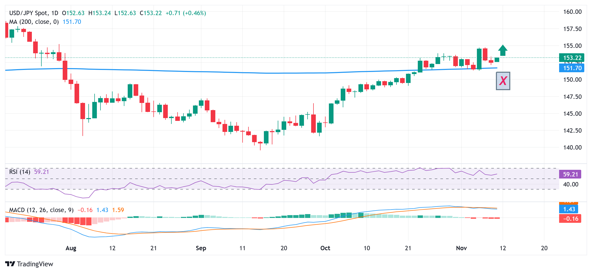日本央行加息前景不明,日元疲弱,美元/日元处在153.00中档下方
