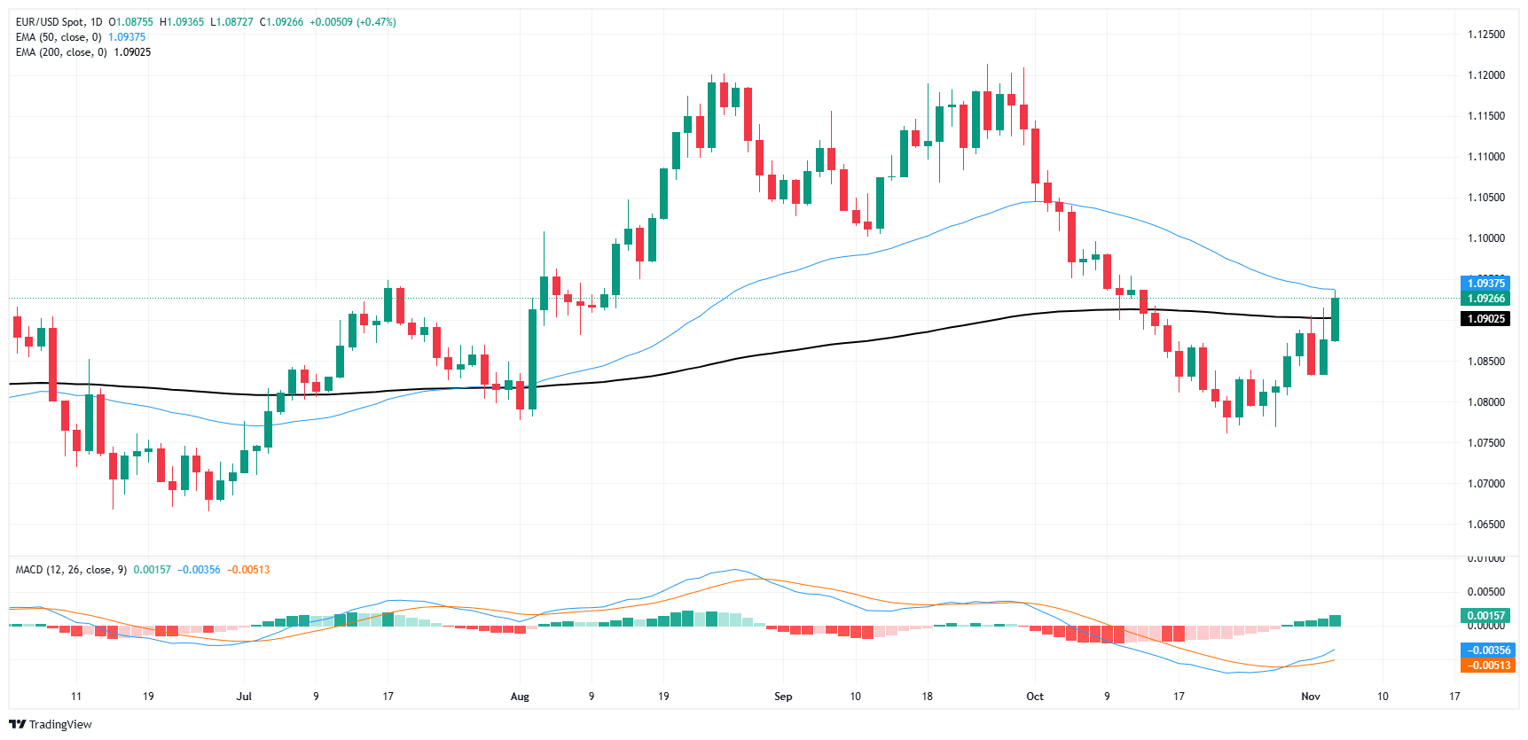 特朗普交易持续升温,欧元/美元出现一些卖压,跌至1.0800附近