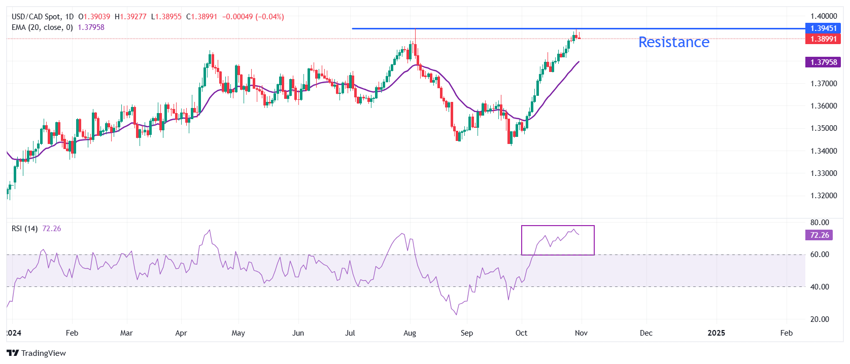 美元/加元价格预测:难以在 1.3900 上方站稳脚跟