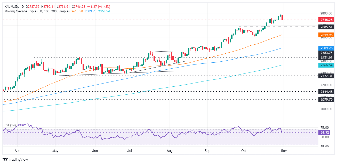 周四,金价未能受益于美国国债收益率下跌,从历史高位回落。尽管如此,贵金属月底仍上涨愈 4%,并保持在 2,700 美元关口上方。