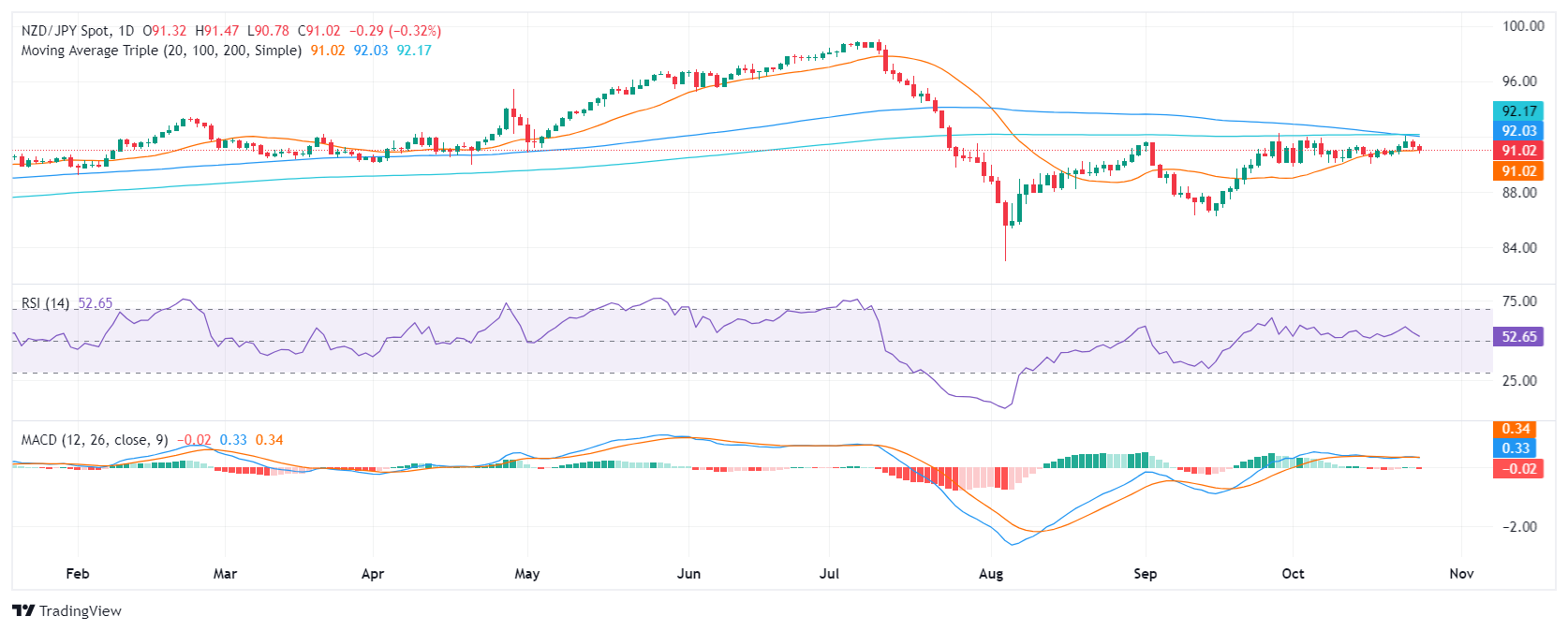 纽元/日元近期维持窄幅区间震荡,缺乏明显方向动能。不过,上周五盘中小幅下跌 0.32% 至 91.00,暗示市场情绪可能发生反转。