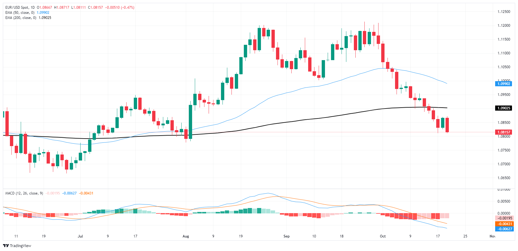 欧元/美元回落,盘整逼近1.08水平