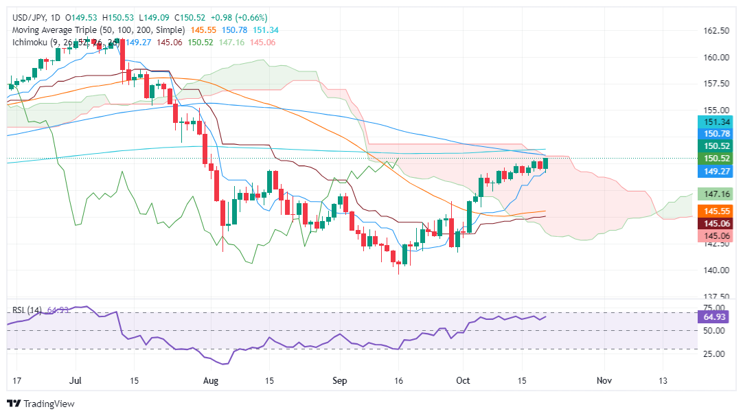 周一美国时段美元/日元攀升,涨幅为 0.62%。由于交易员降低了美联储将展开激进宽松周期的几率,美国国债收益率上升,美元/日元创下了12周来的峰值150.52。发稿时美元/日元进一步上涨处在150.7