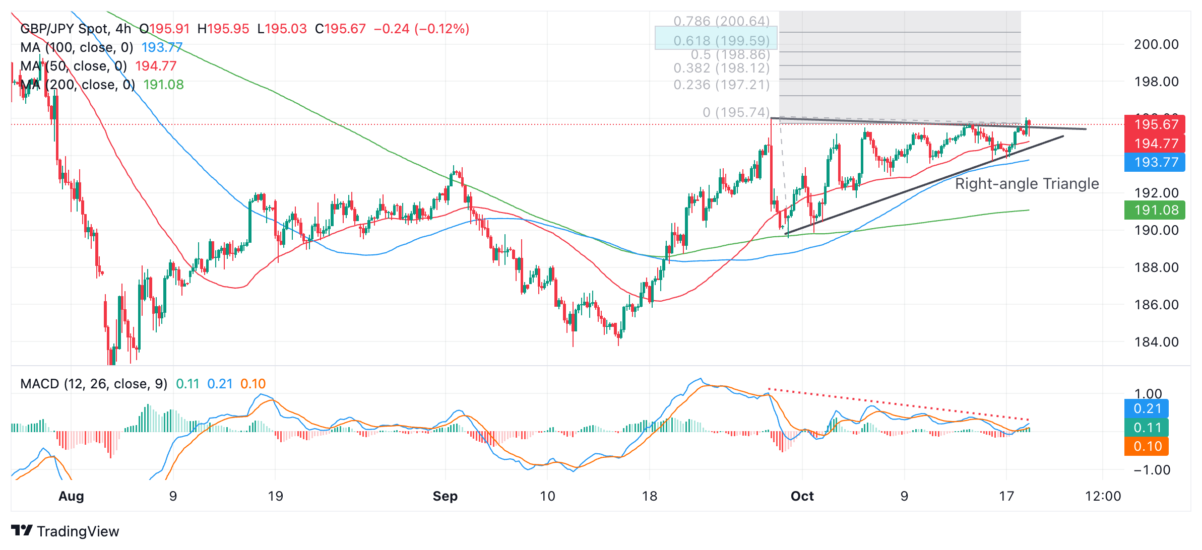 英镑/日元已形成直角三角形,表明可能突破走高。