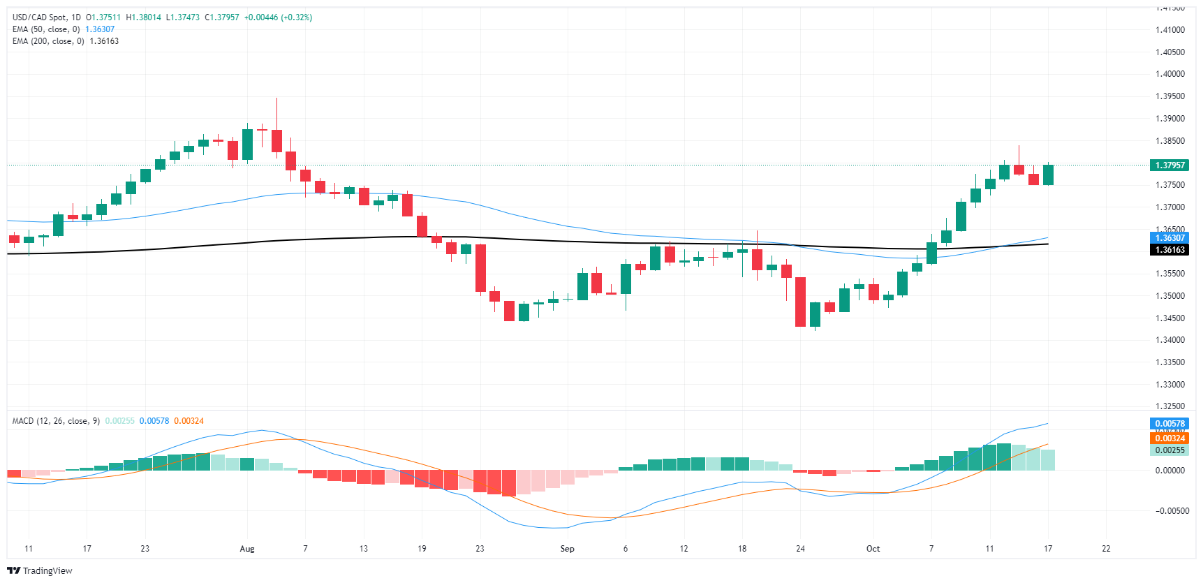 美元走强,美元/加元小幅上涨至 1.3800 附近