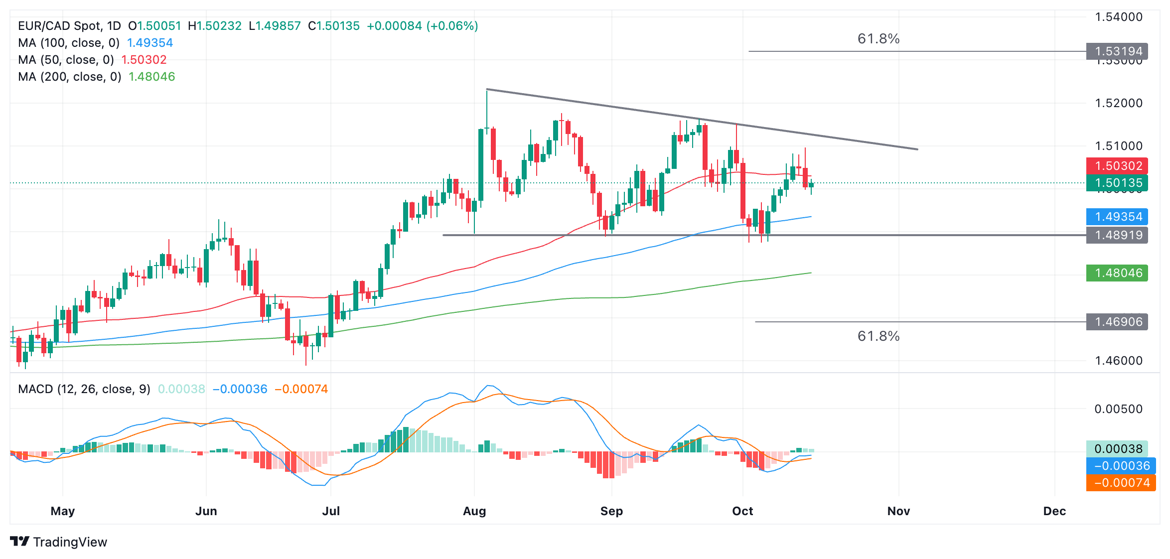 欧元/加元正沿着十周走廊反弹,该走廊的底部在 1.4890,而倾斜的上限在 1.5100 附近。也就是说,该货币对短中期处于区间波动的横盘趋势中。