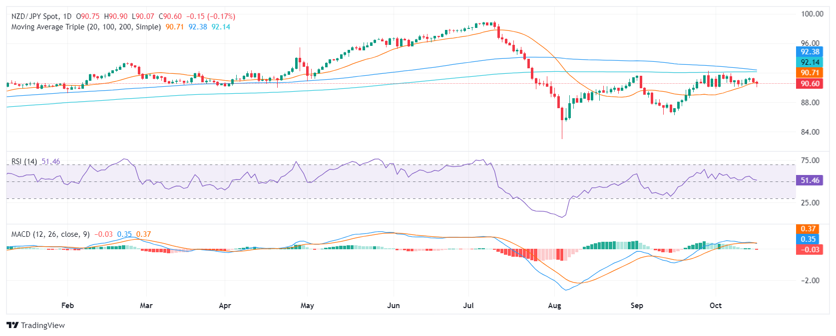 周三盘中,纽元/日元温和下跌至 90.60,持续了过去几个交易日的横盘走势。