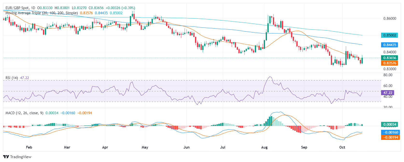 周三盘中,该货币对登陆0.8360,涨幅为0.37%。该货币对飙升并试图穿过 20 日均线(SMA),但动能依然平平。