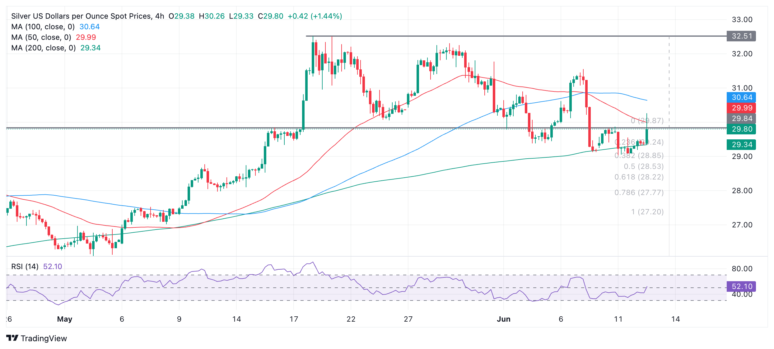 白银(XAG/USD)在周三市场变动数据公布后走高,并试图重新突破关键阻力位 30.00 美元,即四年盘整区间的顶部。