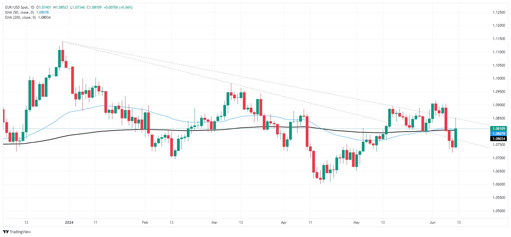 周三,美国消费者物价指数通胀低于预期之后,欧元/美元上涨,市场风险偏好情绪飙升,但美联储最新公布的利率预期点阵图偏向鹰派,打压了市场情绪,最终欧元/美元收跌。