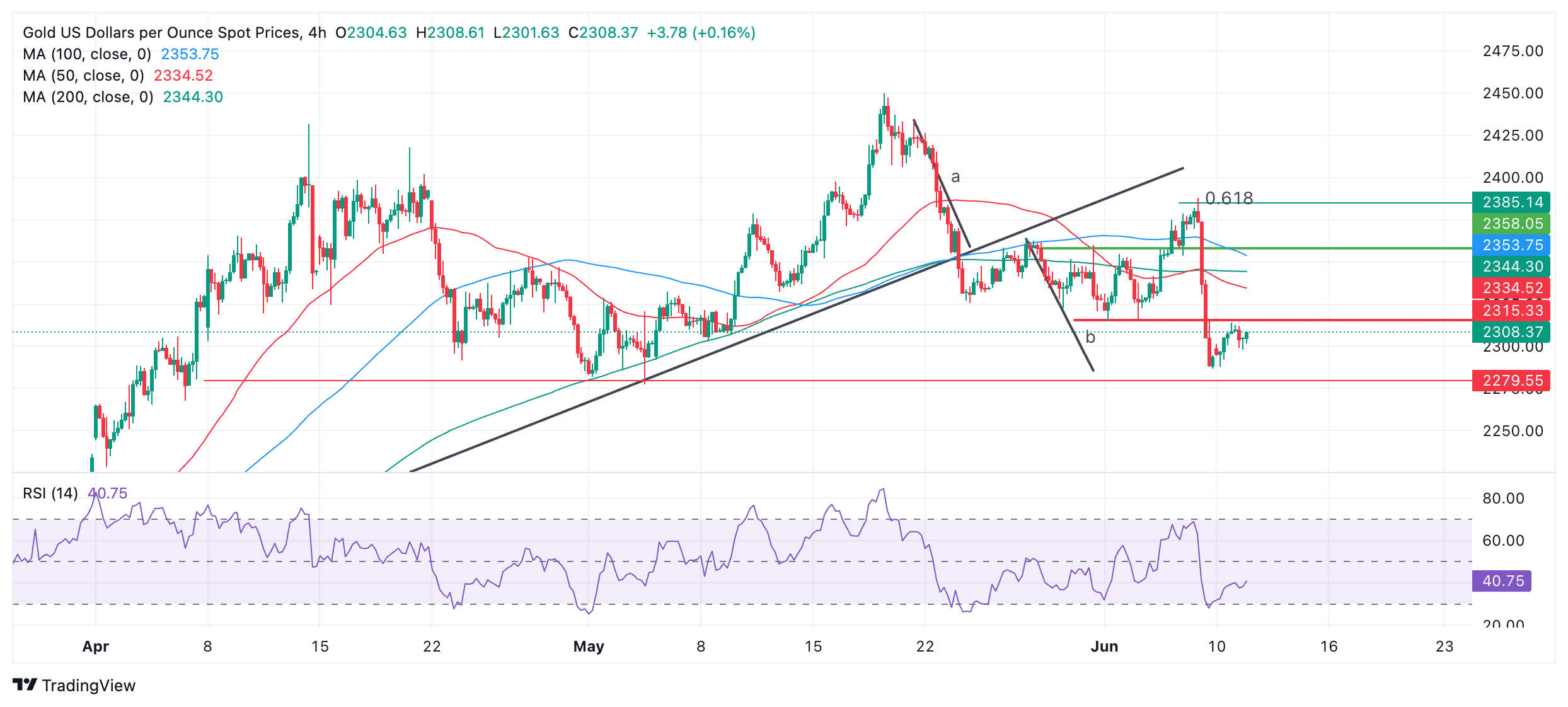 黄金(XAU/USD)在周一晚些时候被关键支撑位转阻力位2315美元拒之门外后,周二下跌了0.25%。