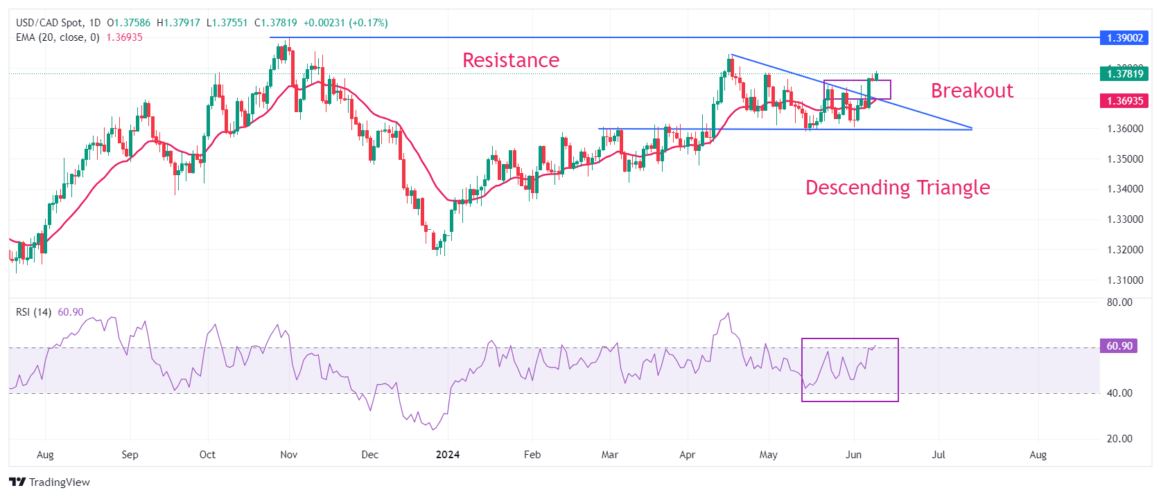 美元/加元价格分析:在美国CPI和美联储政策利率决议决定前升至1.3800