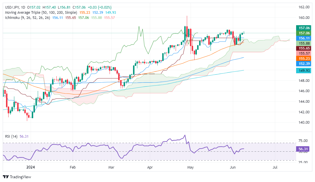 美元/日元价格分析:挣扎于157.00附近,下跌并保持低迷