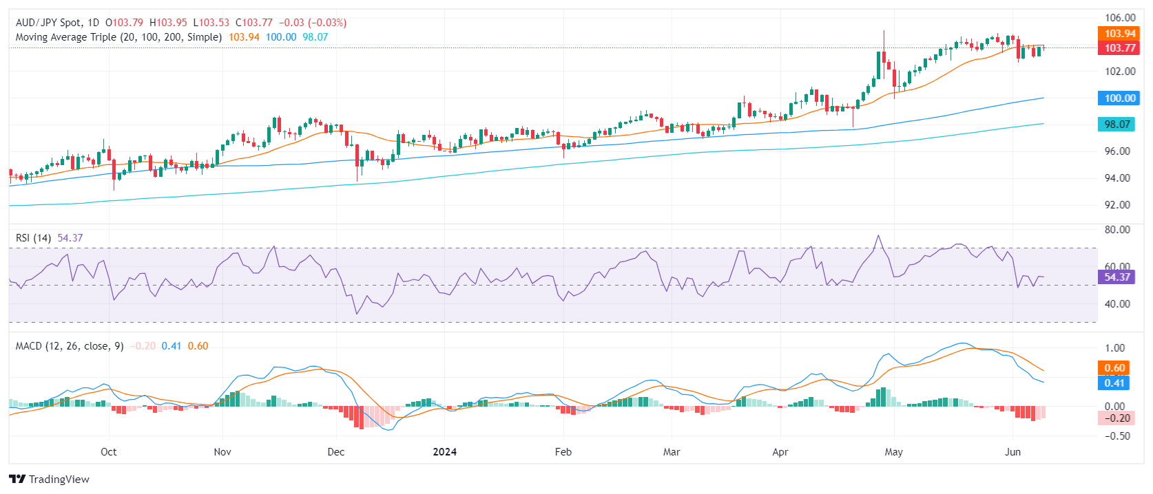 周二交易中,澳元/日元短期前景明显改善,逼近 20 日简单移动均线(SMA)103.90。然而,由于澳元/日元仍处于盘整状态,进一步上涨的动力可能不足。因此,买方未能守住日线涨幅。