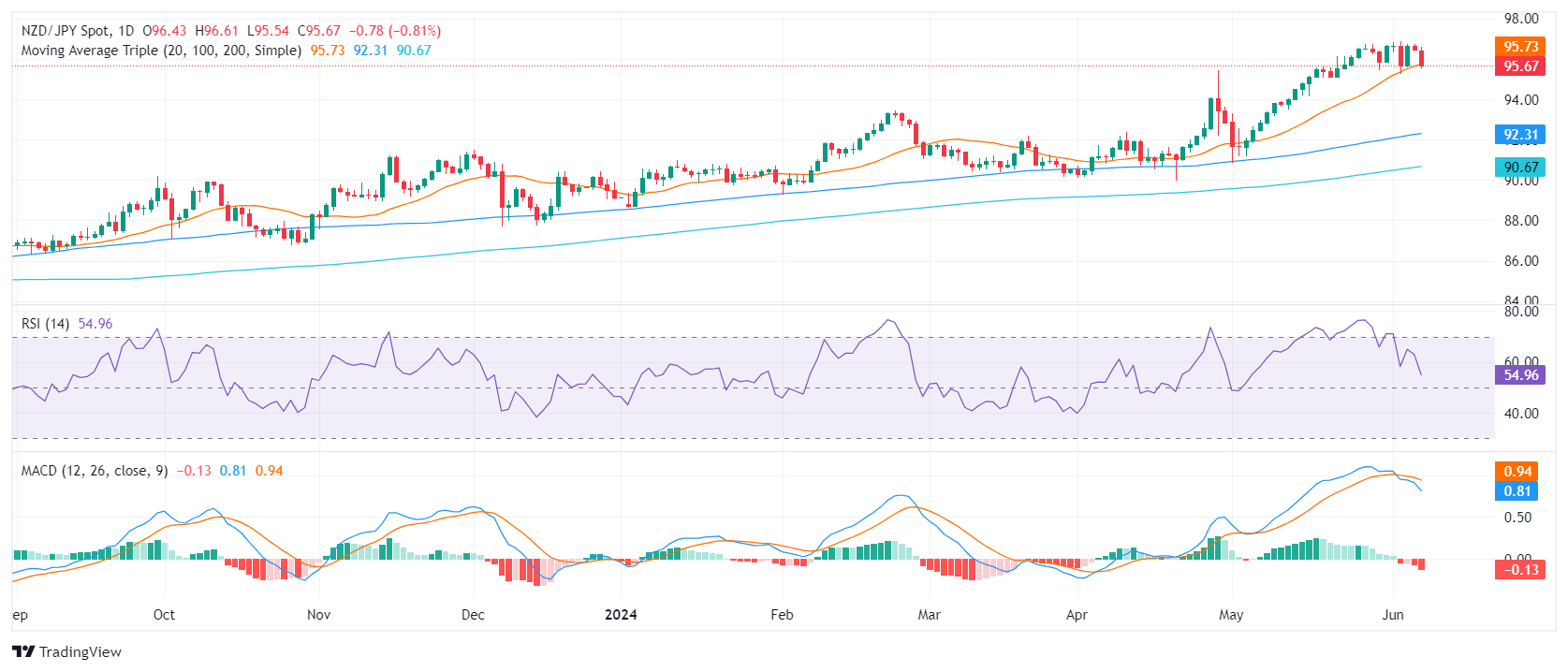 周五,纽元/日元面临抛售压力,纽元/日元下跌接近 20 日简单移动均线(SMA)95.70。看来,盘整阶段可能收紧占据主导,阻止多头主导的势力。