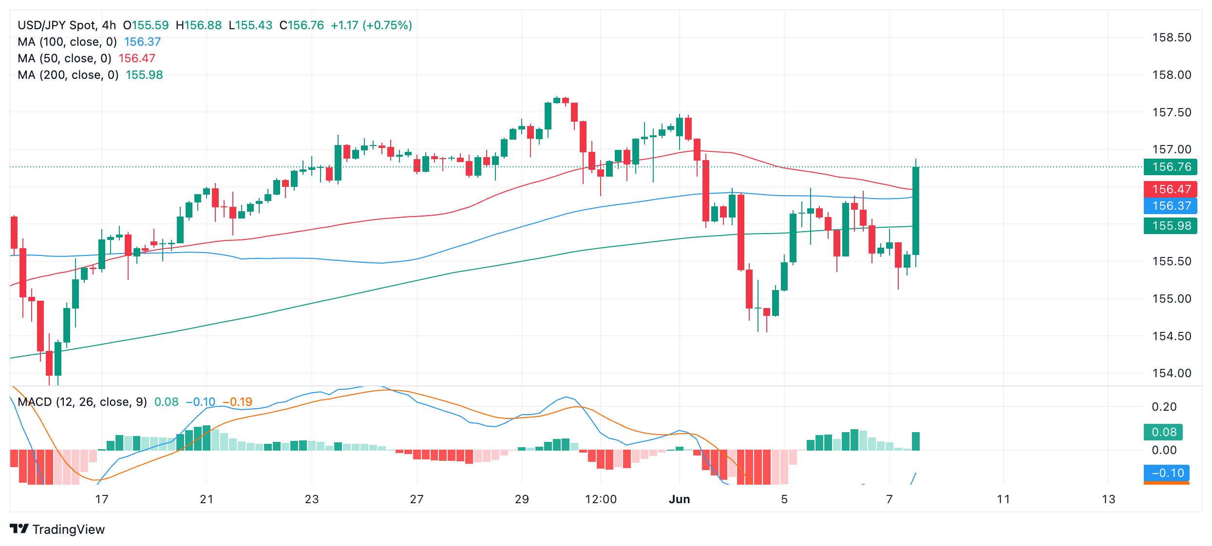 在周五美国非农就业(NFP)数据公布后的几分钟内,美元/日元飙升超过0.5个百分点。由于结果好于预期,美元走强,美元/日元交投于 156 区域上部。