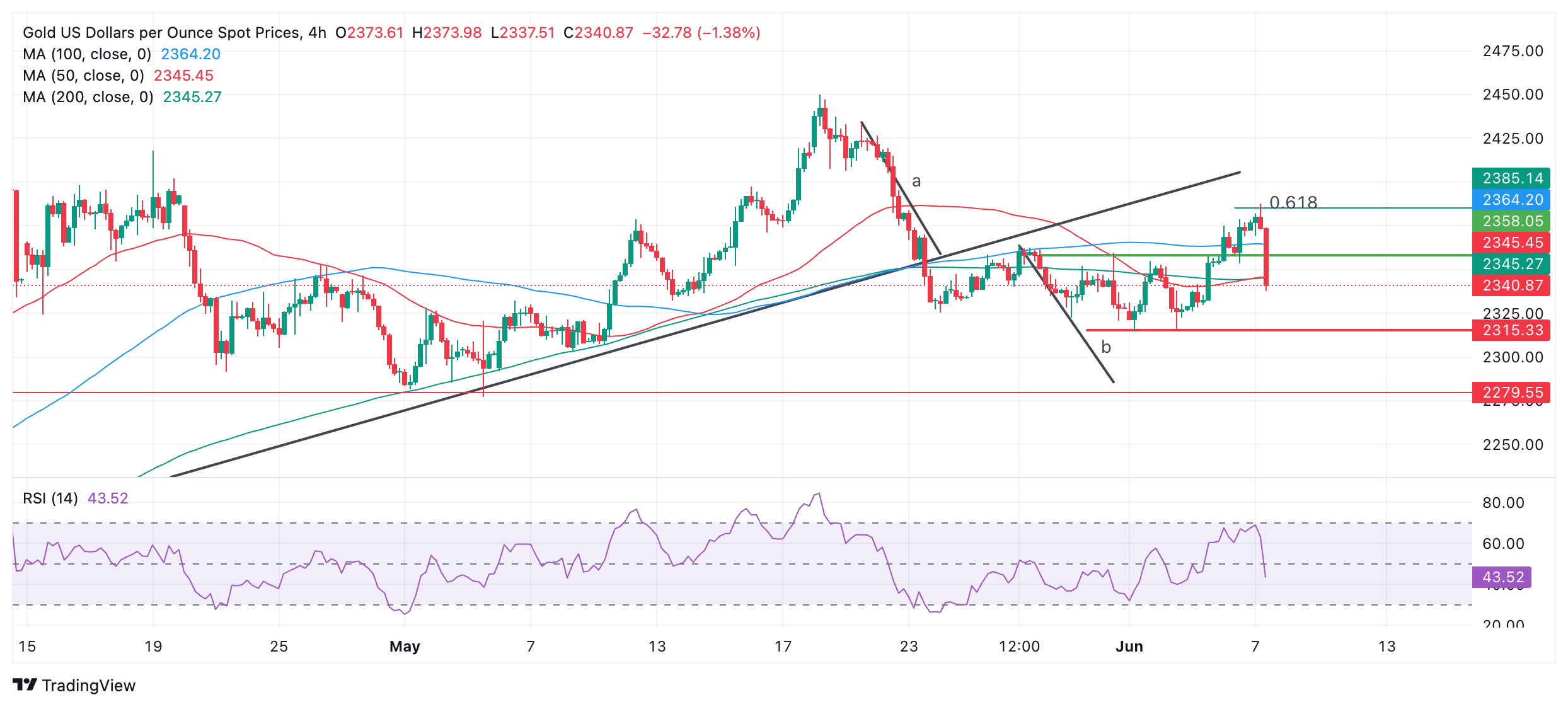 周五,在美国非农就业数据(NFP)公布后,黄金(XAU/USD)下跌超过0.5个百分点,至2,320美元。数据显示,美国经济在5月份增加了27.2万个就业岗位,而此前预期为18.5万个。这一结果也高于