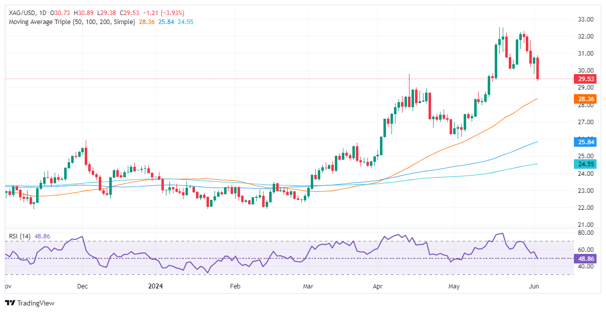 银价价格分析:构筑双顶,遇阻 30.00 美元