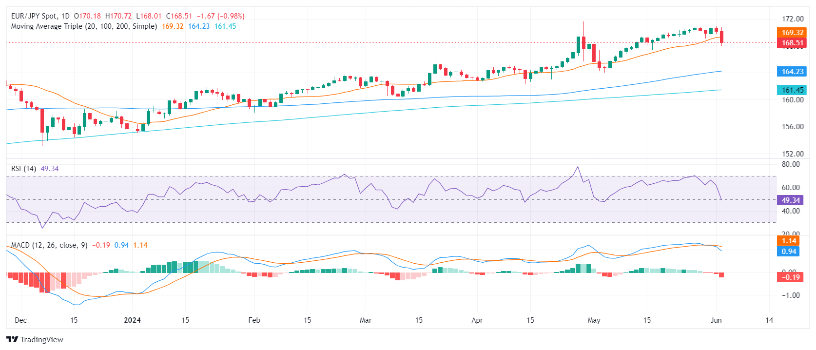 周二盘中,欧元/日元承受了巨大的抛售压力,跌破了位于 169.30 的 20 日简单移动均线 (SMA) 的强支撑位,并触及 168.50 的低点。尽管这一看跌走势在短期内抑制了前景,但总体看涨前景仍