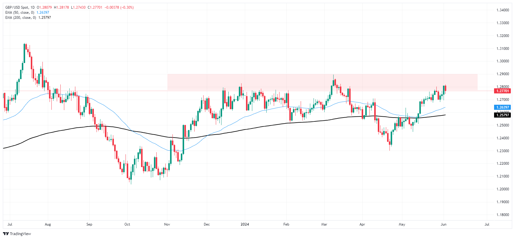 周二,英镑/美元下跌三分之一,继短暂的看涨势头提振英镑/美元接近 3 月中旬以来的最高水平后跌破了 1.2800。美联储(FED)降息的前景被推迟到11月,市场情绪普遍转向美元买盘。