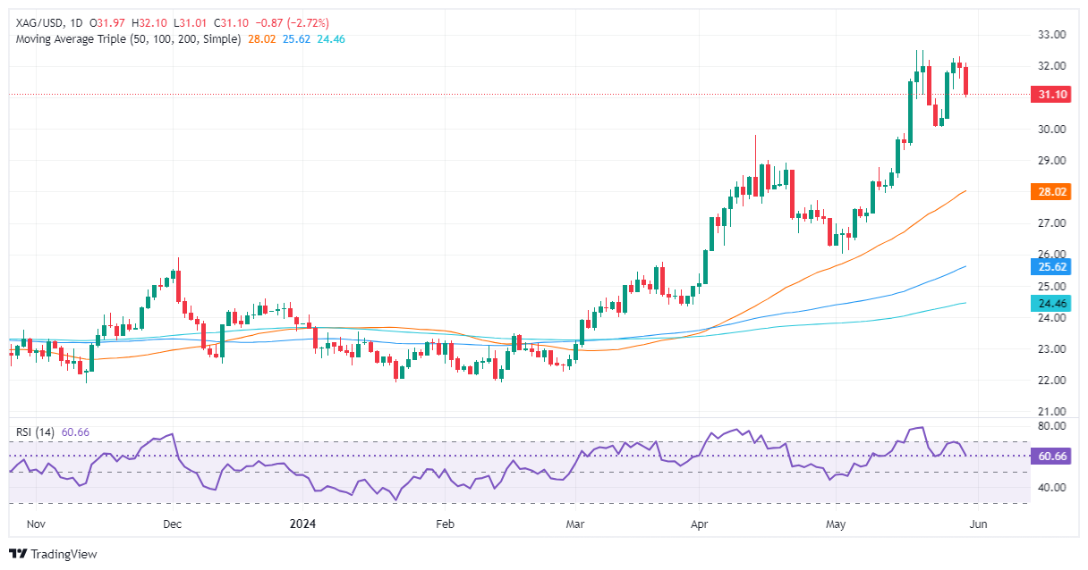 银价价格分析:走出“黄昏之星”,下跌接近31.00美元
