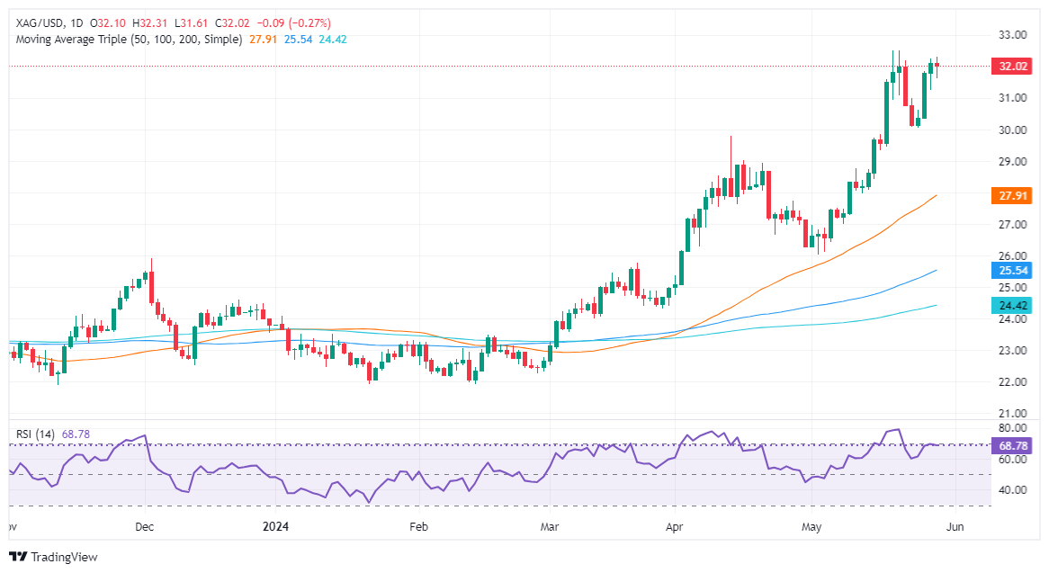 银价价格分析:有望构筑“双顶”,跌破32.00美元