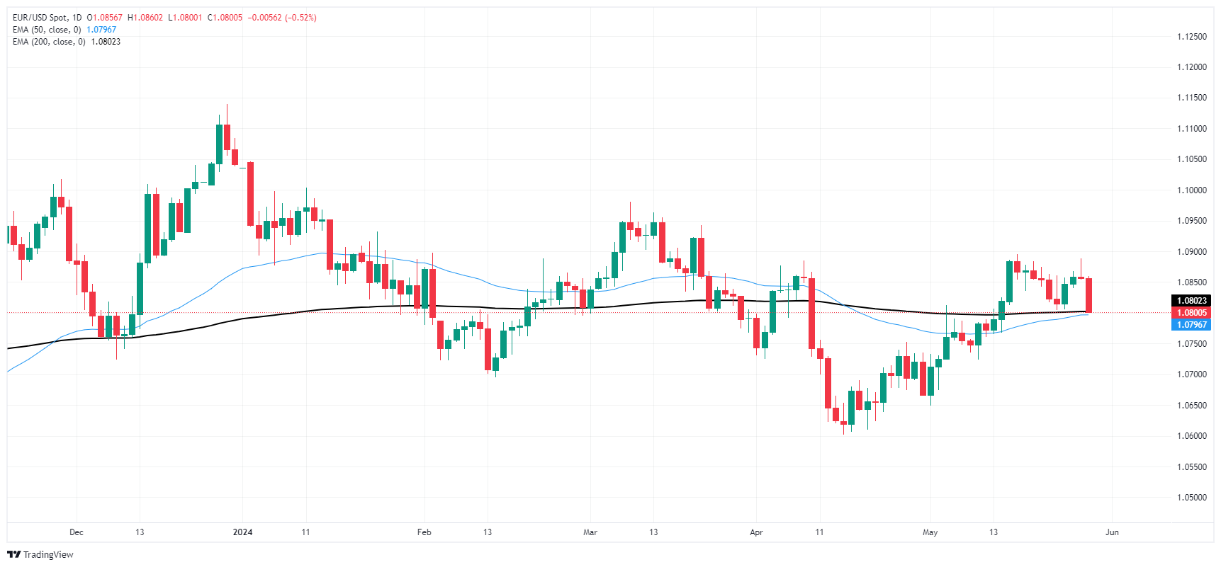 欧元/美元跌回 1.08 区域,焦点转向美国国内生产总值和美国PCE价格指数