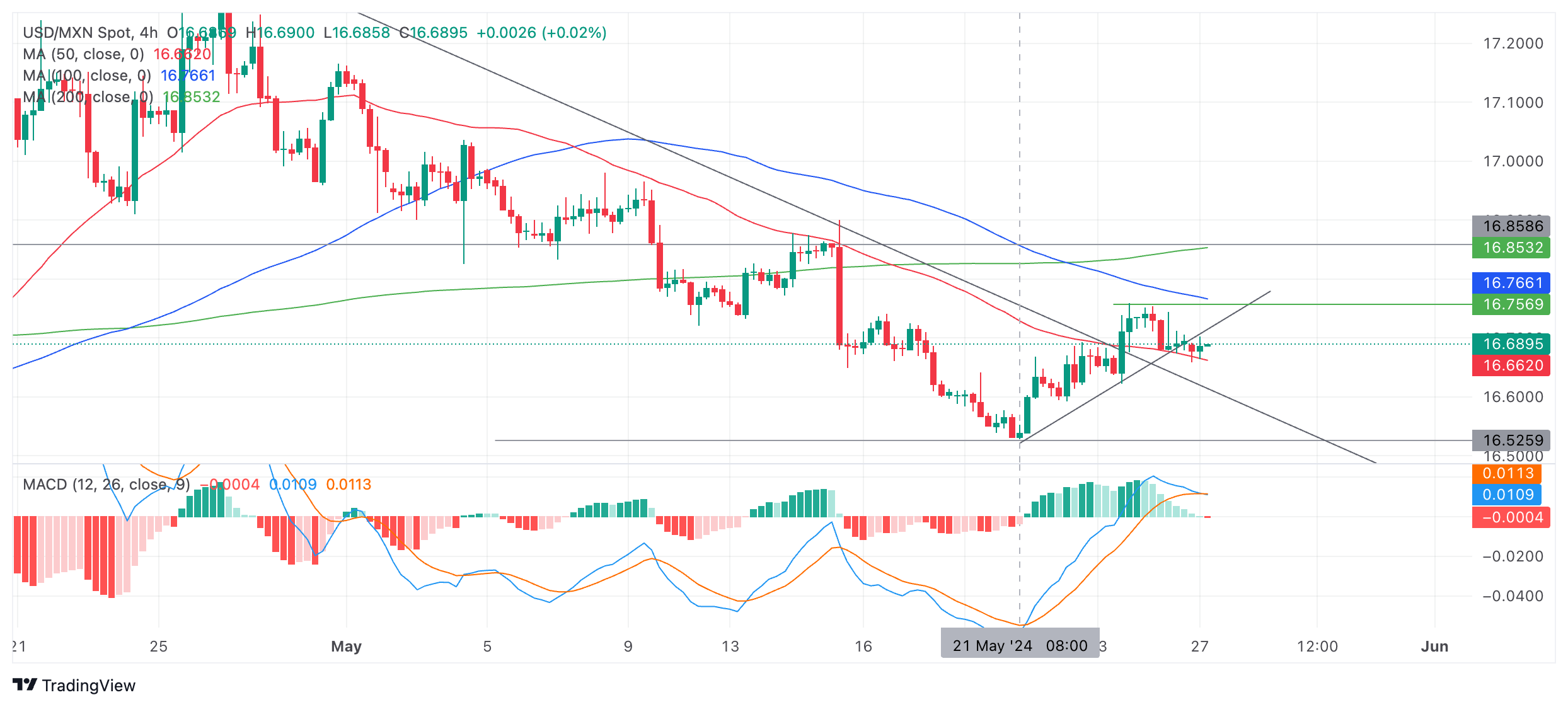 周一伦敦交易时段,英镑(GBP)兑美元(USD)升至 1.2750 附近。英镑/美元保持坚挺,因为支持英国央行(BOE)在 6 月份会议上降低利率的押注已经减少,原因是英国 4 月份消费者通胀率的下降