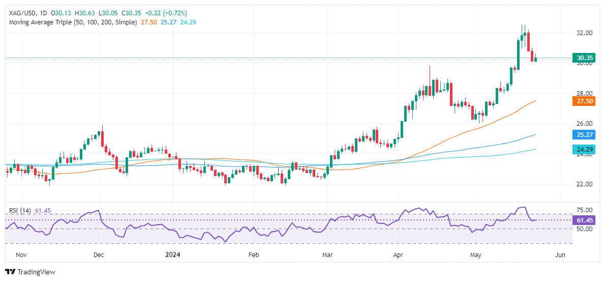 银价价格分析:银价收窄跌幅,继续看涨并坚守在 30.00 美元上方