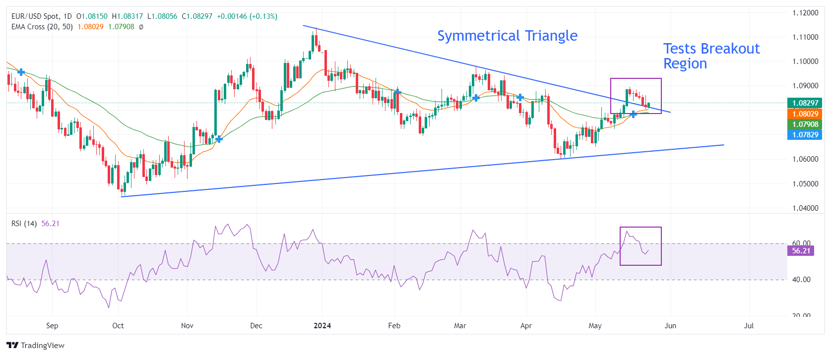 欧元兑美元在周五纽约交易时段的1.0800上方似乎得到了良好的支撑。该货币对的强势主要是由强劲的欧元区5月份采购经理人指数(PMI)初值所推动的。强劲的综合PMI改善了欧元区的经济前景,但欧洲央行(E