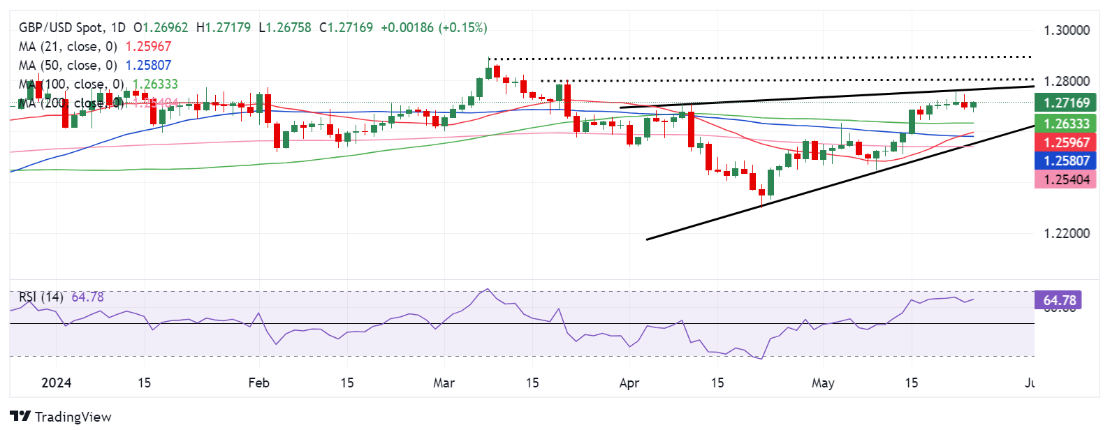 英镑/美元价格分析:尽管攀升至 1.2700 以上,但走势低迷