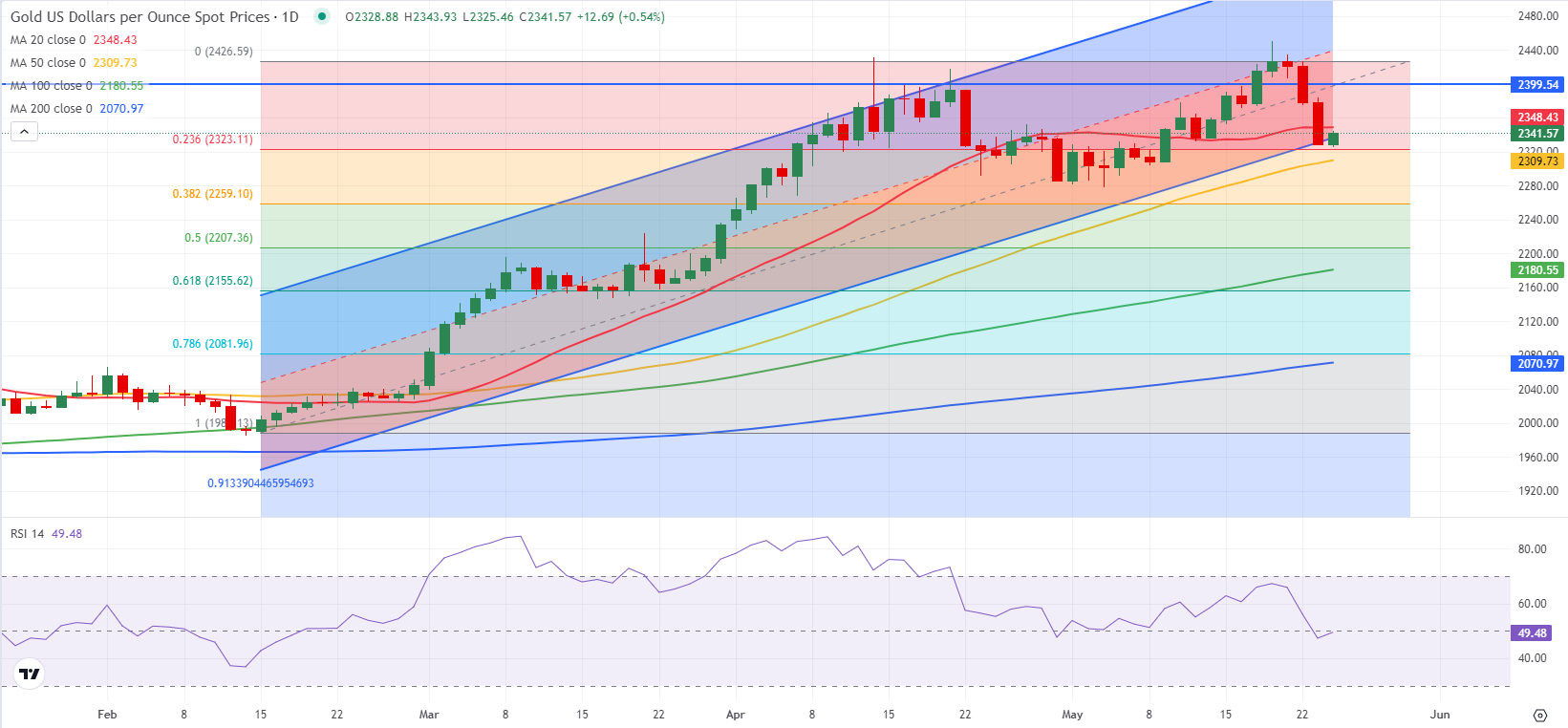 黄金一周预测:若无法收复 2,400 美元,则可能扩大修正范围