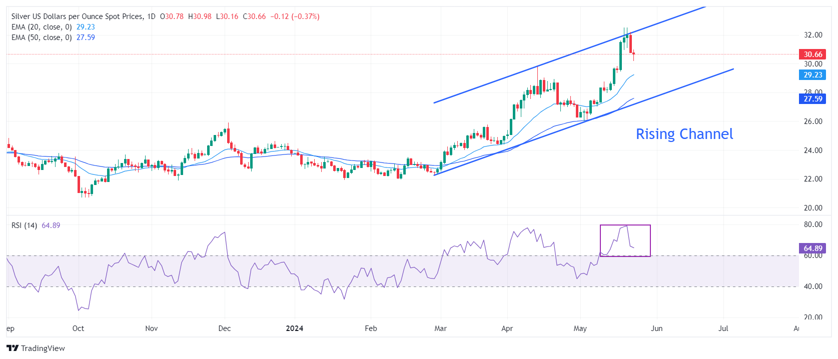 白银价格预测:投资者消化鹰派 FOMC 会议纪要,白银/美元在 30.20 美元附近获得支撑